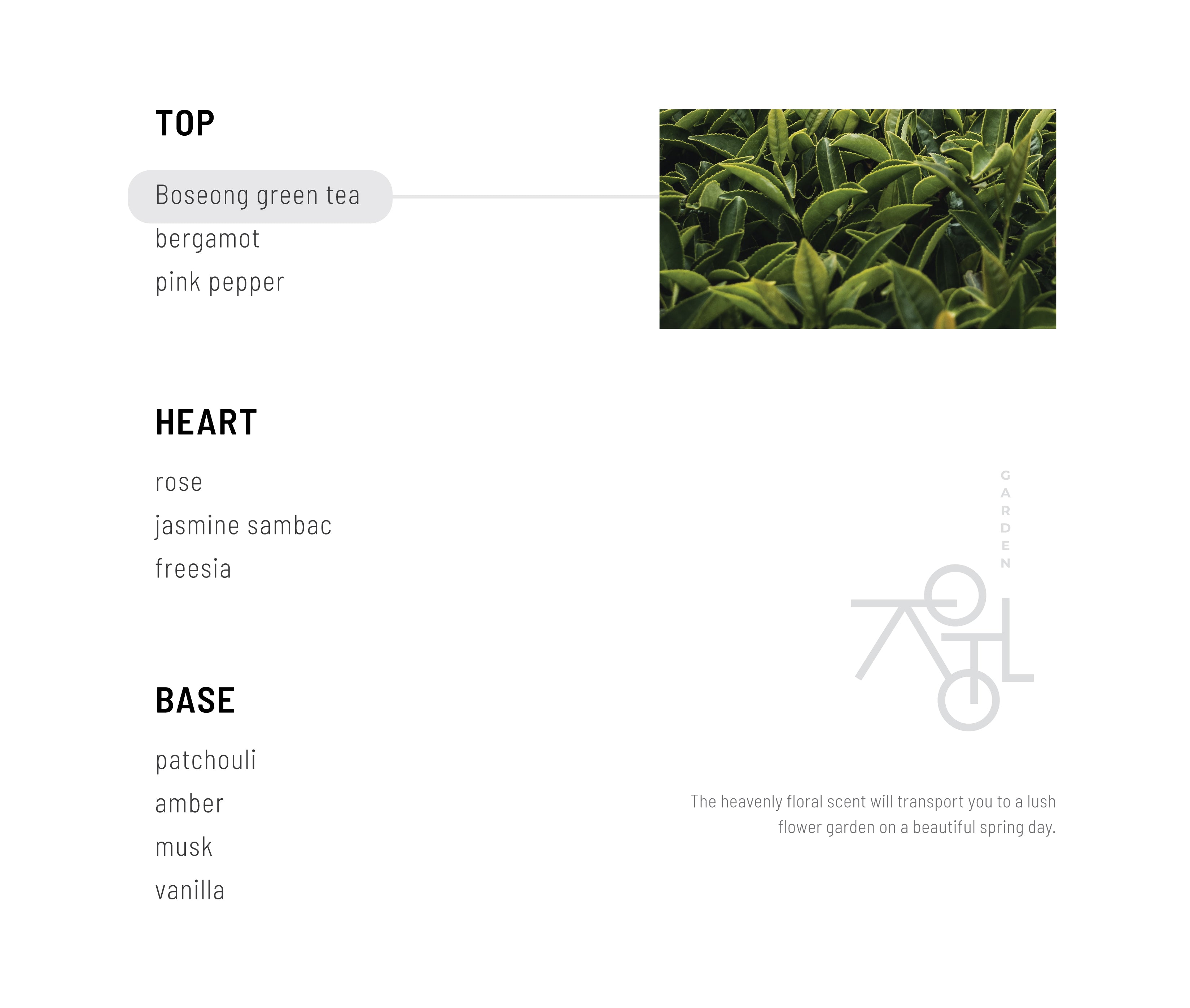 TOP/ Boseong green tea, bergamot, pink pepper