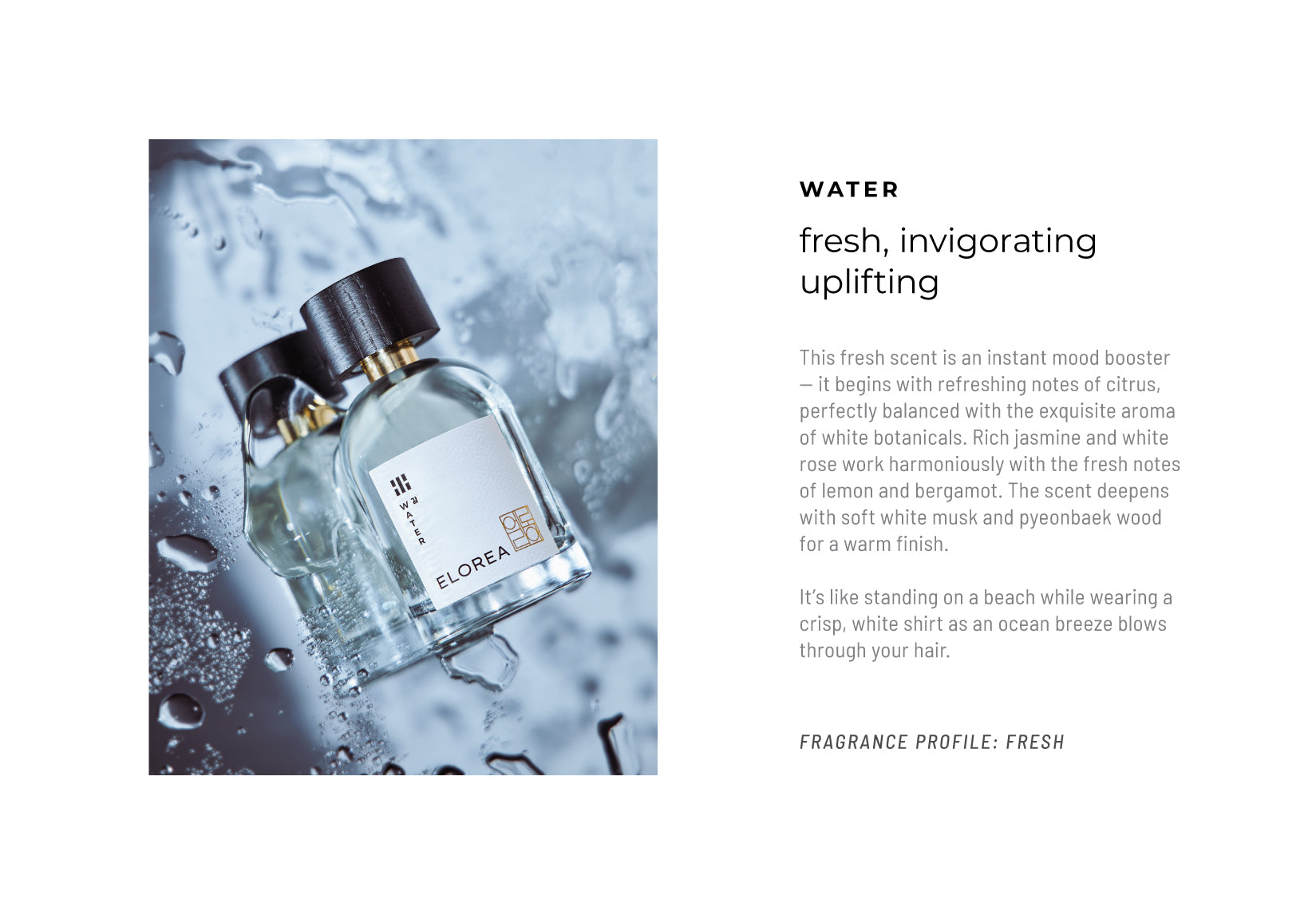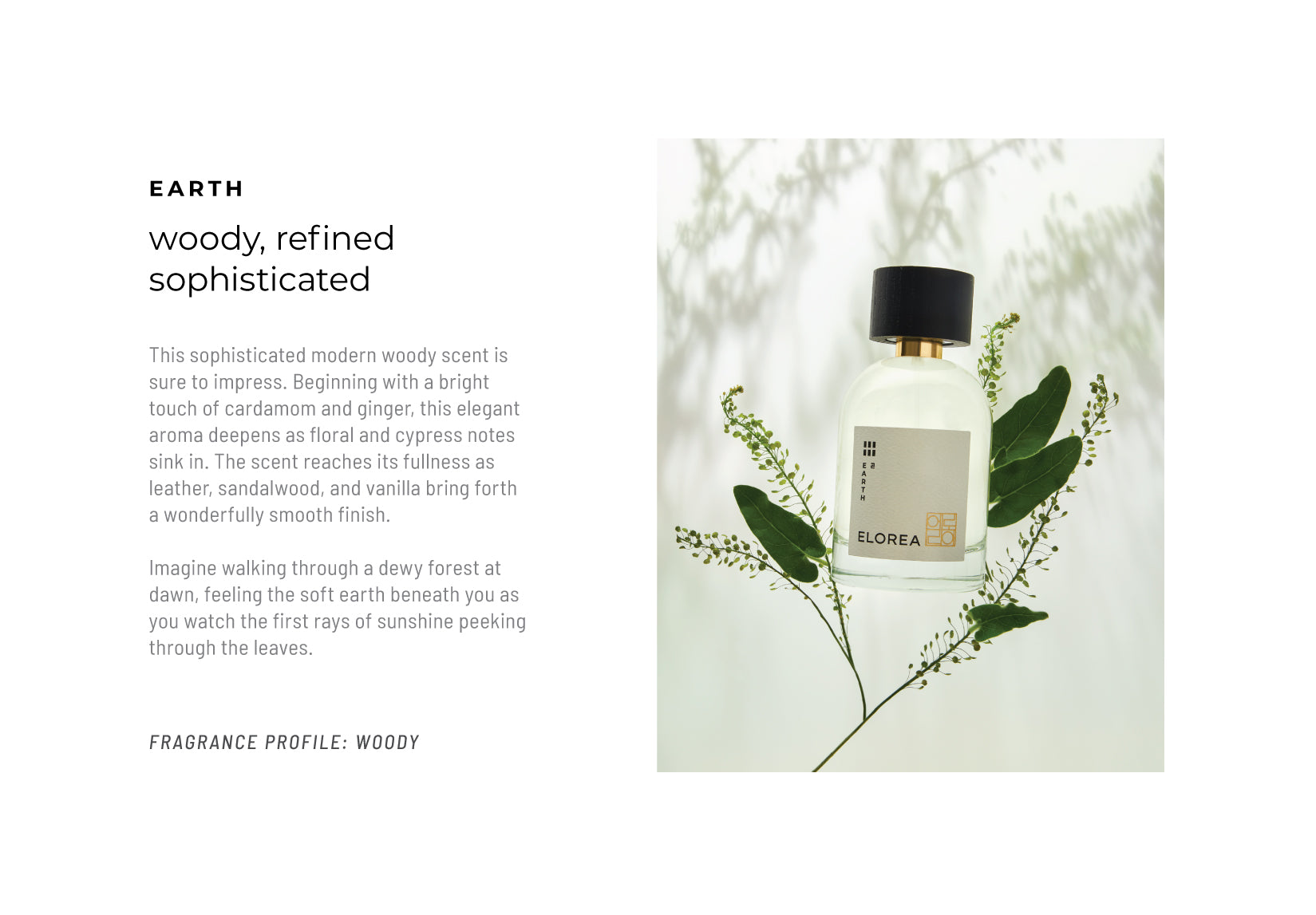 Experience the full collection with the purchase of our discovery set. Every discovery set comes with a voucher of equal value, which you can use towards a full bottle purchase. It can be applied to either 50ml or 100ml. Please note that this voucher cannot be combined with other promotions. This voucher only works online at Elorea.com and will expire in 30 days from the date of purchase.